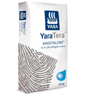 KRISTALON este fabricat in Olanda de compania Yara , lider mondial ca producator si distribuitor in domeniul ingrasamintelor chimice pe baza de azot. Este un ingrasamant chimic complex, pe baza de azot, fosfor, potasiu si microelemente, complet solubil in apa, ce poate fi aplicat prin stropire foliara la culturile de camp,sau prin fertigatie la legume.